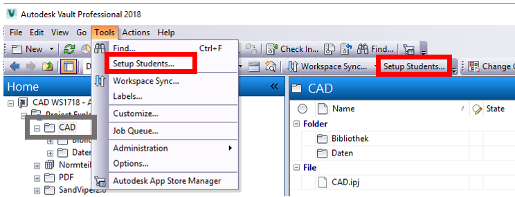 You are a lecturer and you want to set up a CAD course? The Academic Package for Autodesk® Vault® provides you everything you need to setup a Vault for your CAD course or Tutorial. To create a student user, assign it to a team group and a subgroup, create a folder and assign ACLs - this procedure takes about 60 mouse clicks - something you do not want to do for 100+ students. With the SetupStudent extension, you can create these users and the needed structures on the fly from your participants list.
